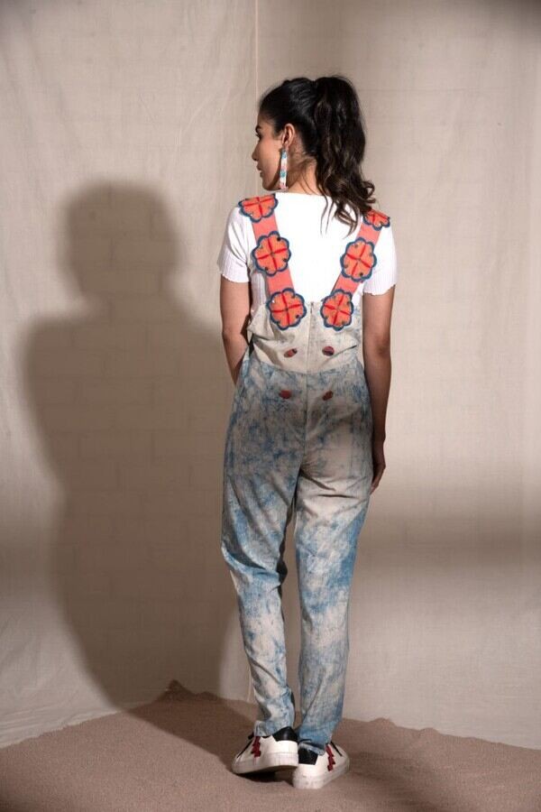 Khumaar ke Khaas Ready Jumpsuit in cotton fabric with a perfect blend of phulkari with western to beautify the look. This holiday season give your wardrobe a classy vibe. Glam it up for a club night or a day out with your peeps to leave a mark.