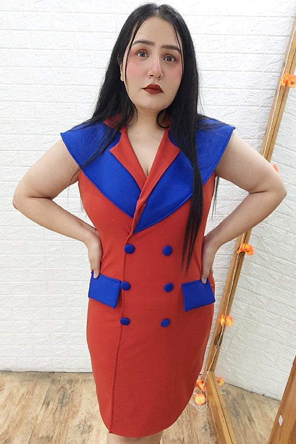 Orange coat dress with flap sleeves design sums up to a pretty and contemporary dress. The collar on the neck adds to the chicness of the dress.