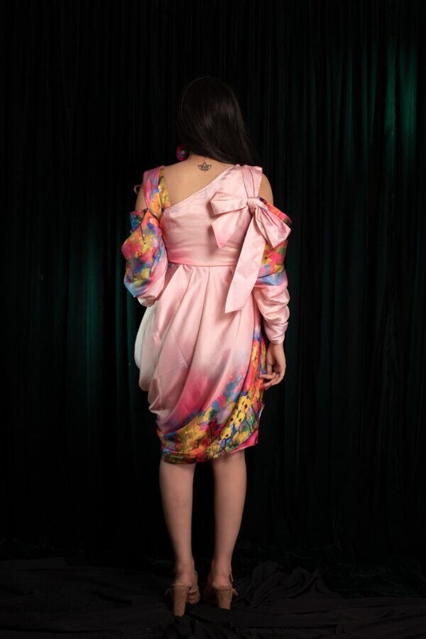 Satin draped dress is a perfect pick for a subtle Indian look. An outfit which is very easy and comfortable to carry and at the same time gives a fusion look. Wear it for a wedding ritual or on a family get together with some elegant jewellery and rock the look like never before.
