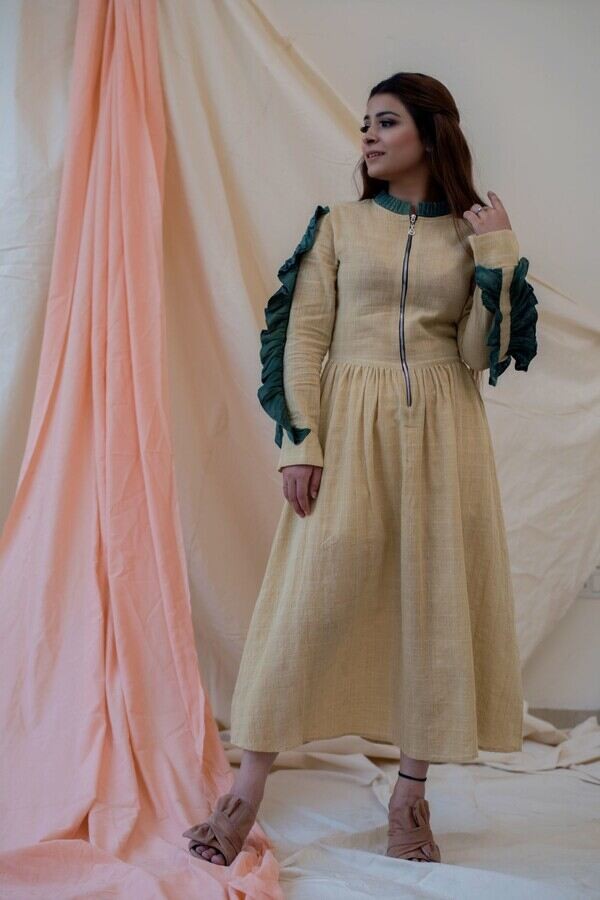 Ditch those regular kurtis and fill in your wardrobe with trendy kurtis for the festive season. Frilled on the sleeves and pleated neck is what you need to be in the spotlight this season.